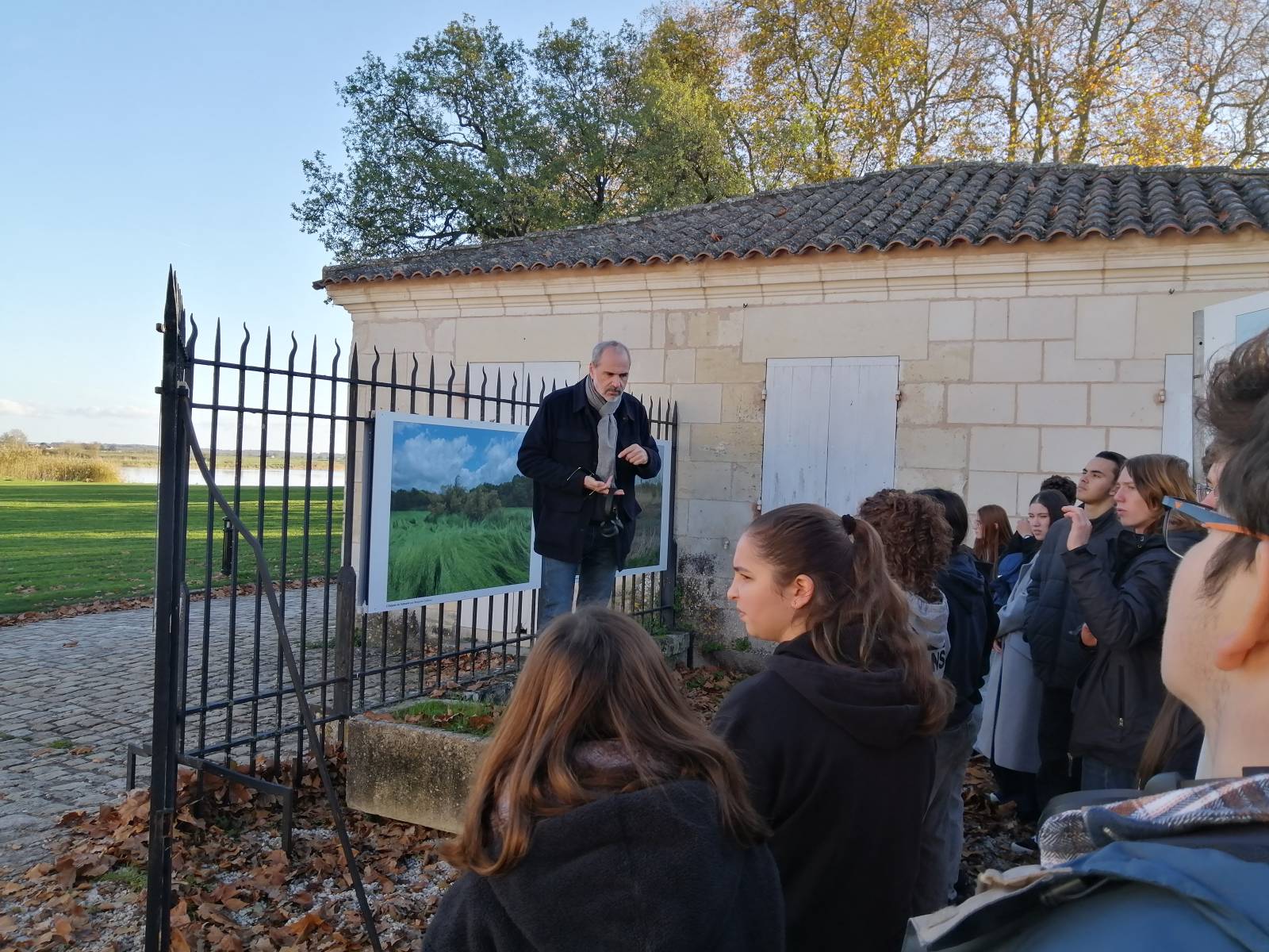 Benjamin Caillaud a exposé ses magnifiques photos des bords de la Charente à La Corderie Royale. Les élèves de 2nde option CAV ont eu la chance de découvrir ces œuvres commentées par leur auteur. Lumière, point de vue, lignes, choix esthétiques et sensibilité ont été au coeur des échanges.