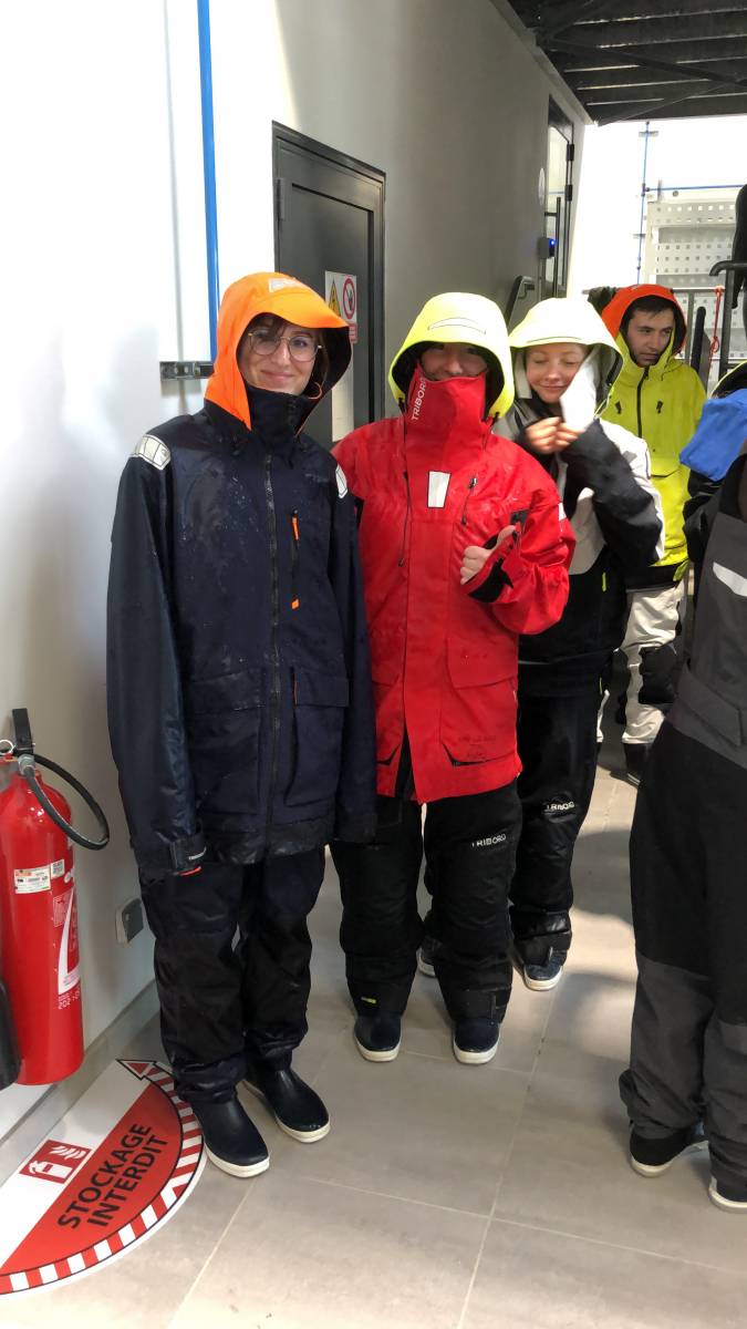Cerise sur le gâteau, elles ont testé l’étanchéité de vêtements de voile dans la « Rain Room » : pluie, paquets de mer, rien ne leur a été épargné. Ce fut une expérience unique ! Et malgré cela, tout le monde est resté au sec.