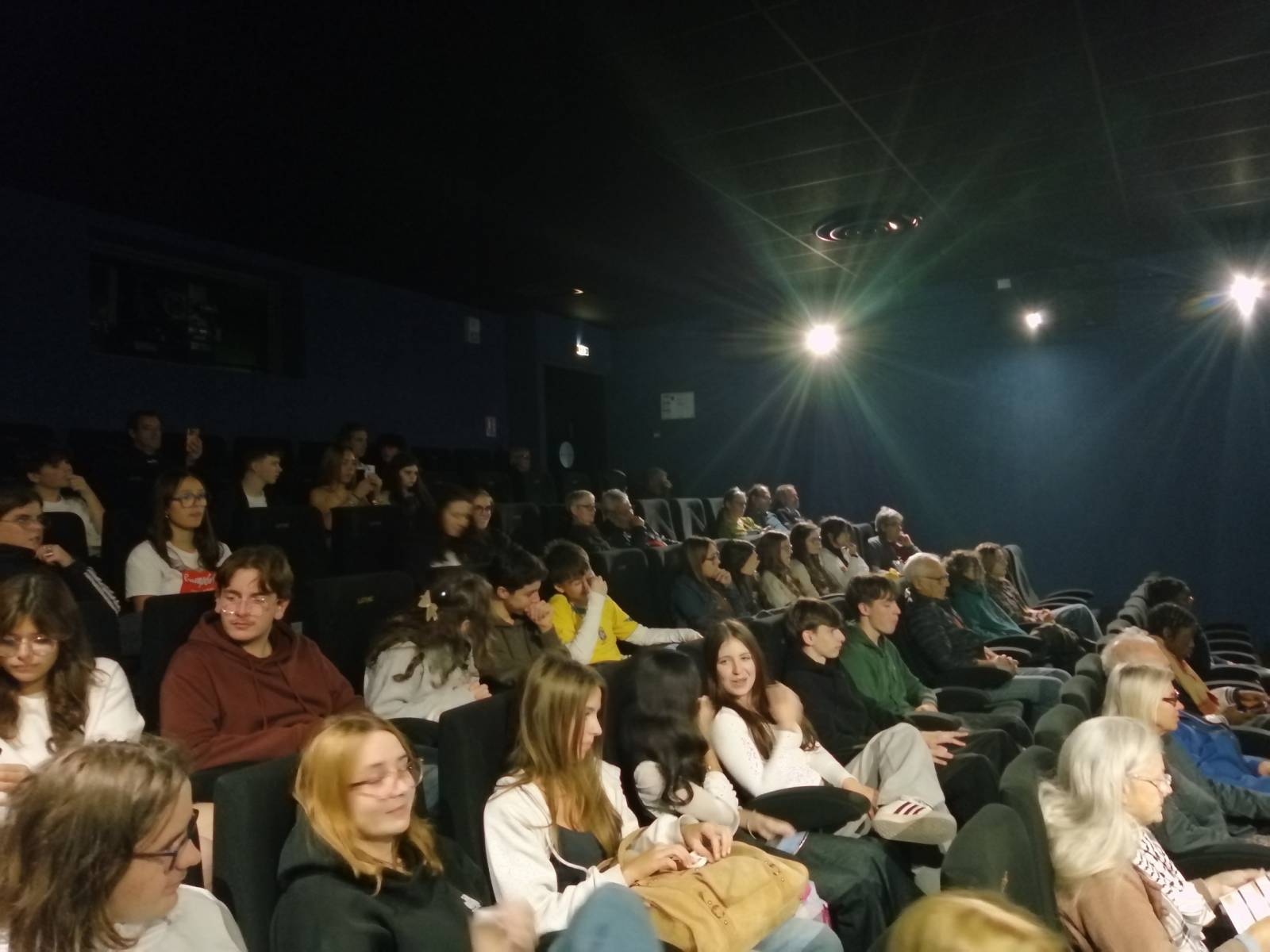 L'après-midi, les deux classes sont allées sur le lieu du Festival Visions d'Afrique au cinéma Eldorado de Saint Pierre d'Oléron pour voir le film Les Saignantes, rare exemple de film africain de Science Fiction.