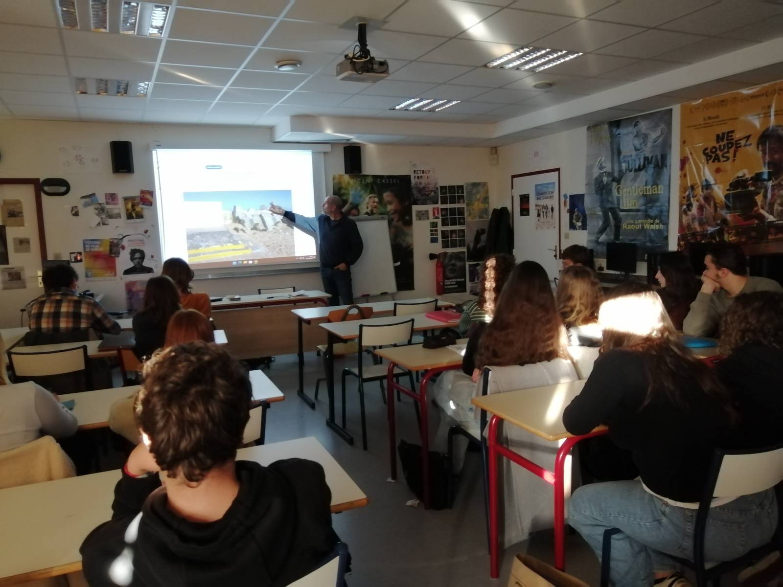 Le mardi 25 novembre 2025, le photographe Benjamin Caillaud est venu en classe de Seconde option CAV pour un retour sur les photos prises par les élèves lors de l'atelier photo sur les bords de la Charente près de la Corderie Royale la semaine précédente. La consigne était de porter un regard sur l'estuaire, et de créer des photographies artistiques, porteuses d'un point de vue singulier et personnel.